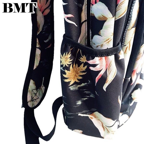 ・耐水ポリエステル素材を使用し、大胆にパームやリーフ柄を全面にあしらったバックパック。