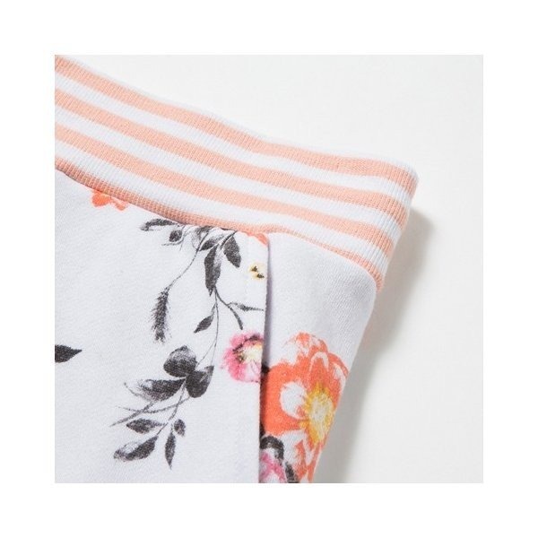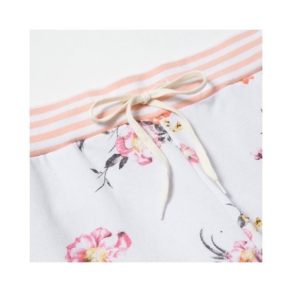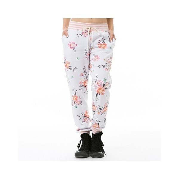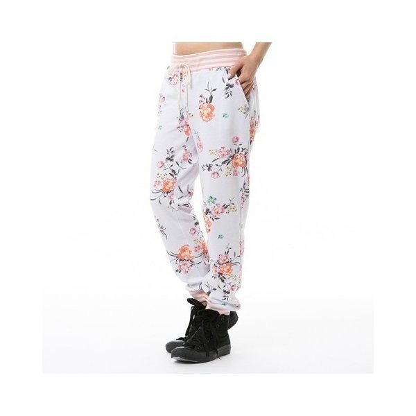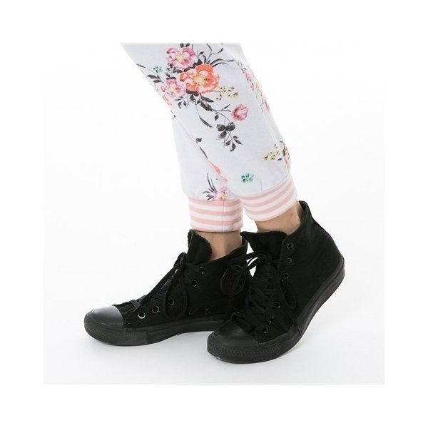 ・裾周りのすっきりとしたトレンドのジョガーパンツに華やかな花柄の総柄をプリント