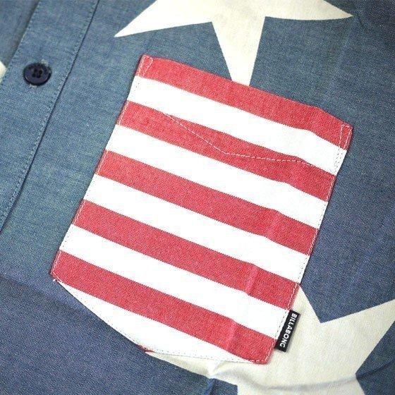 ・薄手で柔らかなシャンブレー生地を使用した、星条旗半袖シャツ