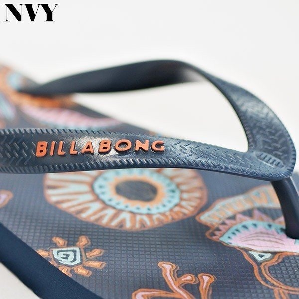 ・鼻緒にはビラボンロゴ、かかと部分にはアイコンプリント、ソール部分はアイコンエンボス可能が施されています。