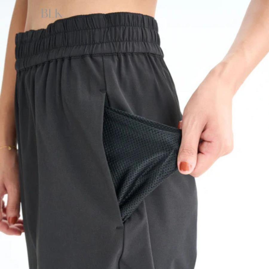 ●ウエストには内紐をつけてサイズ調整可能にし、両サイドにポケットを付けています。
