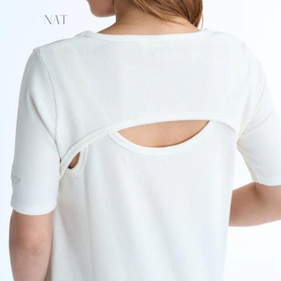 ・フロントはシンプルですが、バックはタンクトップと重ね着したようなデザイン。