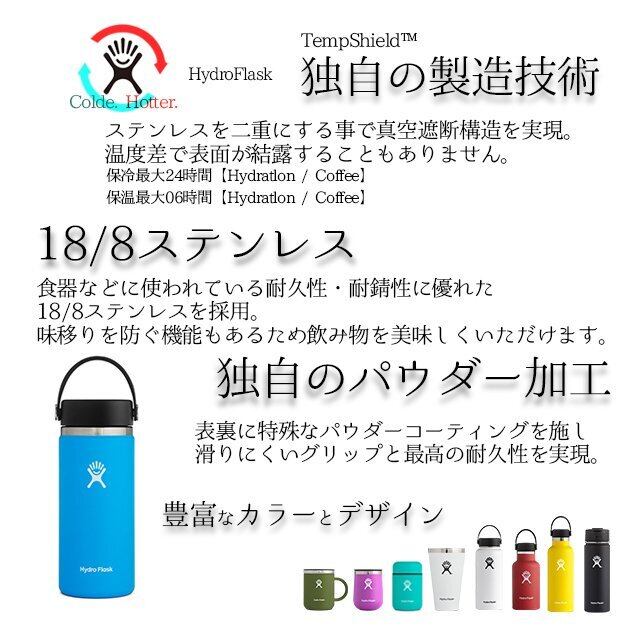 5089026_890019 ハイドロフラスク HydroFlask 大容量水筒 HYDRATION 64oz 1.9L Wide Mouth ハワイ 真空断熱構造 18/8ステンレス 黒 白 ブラック ホワイト ギフト 就職祝い