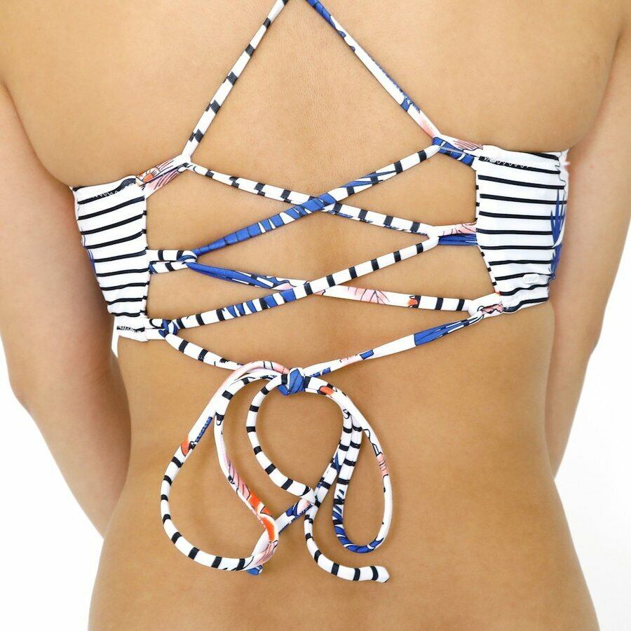 U03-807 リップカール 水着 ビキニ 人気 ブランド 可愛い 紫 白 青 ボタニカル ボーダー パープル ホワイト ブルー M L クロップドホルター RIP CURL