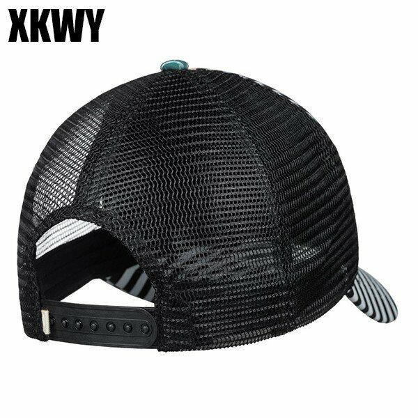 ・フロントパネルに花柄、ツバにボーダー柄をプリントしたレディース用キャップ