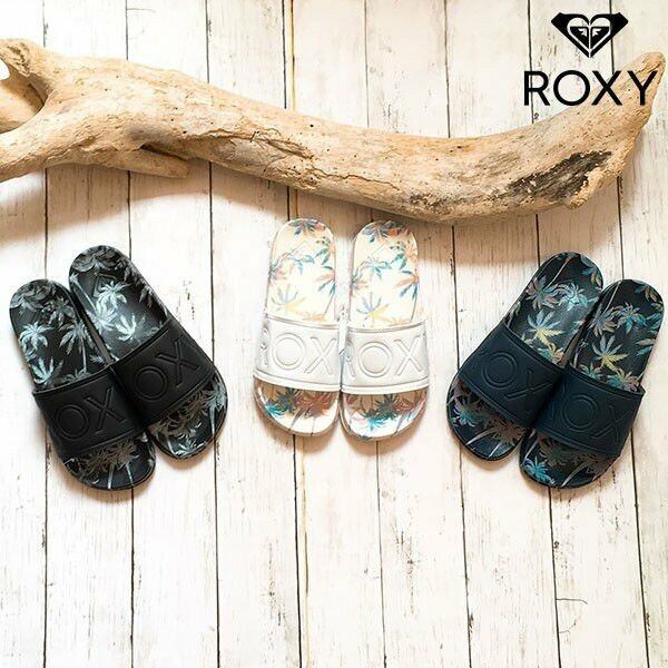 RSD182310 ロキシー シャワーサンダル レディース 通販 人気 ブランド 可愛い ビーチ リゾート プール 旅行 ブラック ネイビー 黒 紺 23cm 24cm SLIPPY PRINTED ROXY