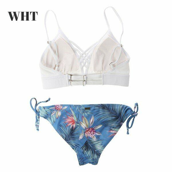 RSW191003 ロキシー 水着 ビキニ 通販 人気 ブランド 可愛い かわいい 白系 ボタニカル ホワイト系 M 無地 レースアップ OASIS ROXY
