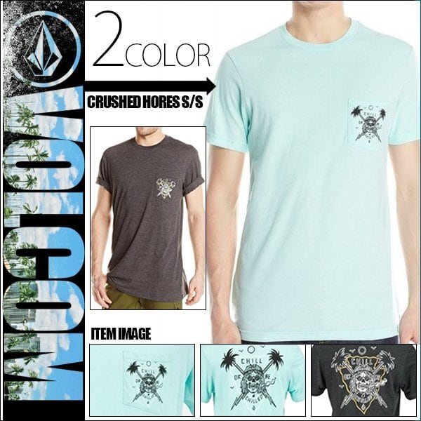 A5721502 ボルコム Tシャツ メンズ 半袖 ポケット おしゃれ 人気ブランド 夏 海 リゾート 選べる2カラー 青系 黒系 S CRUSHED HORES S/S VOLCOM