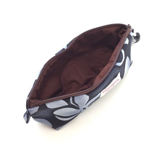 直輸入ハワイアンファブリックを使い一点一点、丁寧に手作業で作りました。ククイの実がチャックについているので