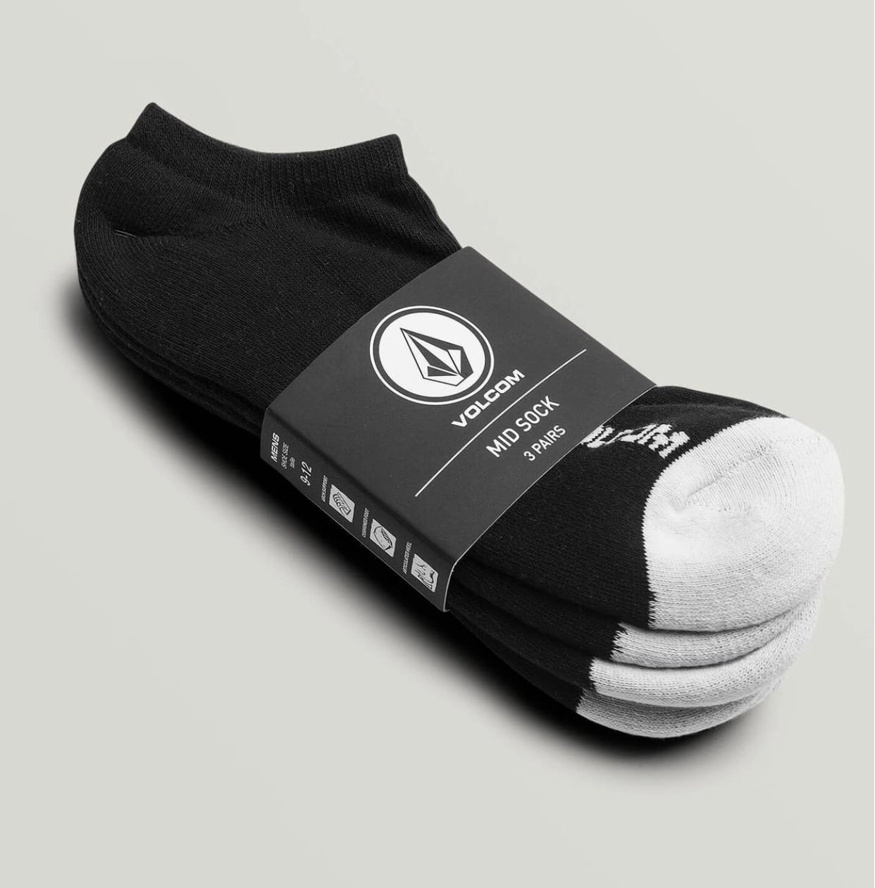 D6321802 VOLCOM 靴下 アンクルソックス3足セット 黒 ブラック靴下 ボルコムメンズ