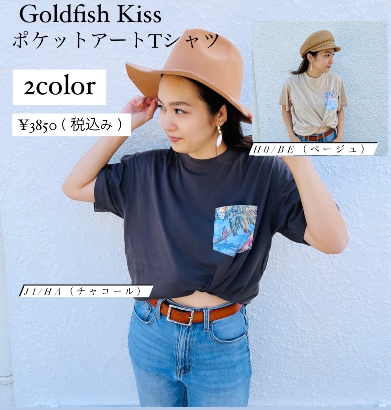 シアトル発サーフアーティスト「Goldfish Kiss(ゴールドフィッシュ・キス)」のアートが映える、ポケットアートTシャツです。