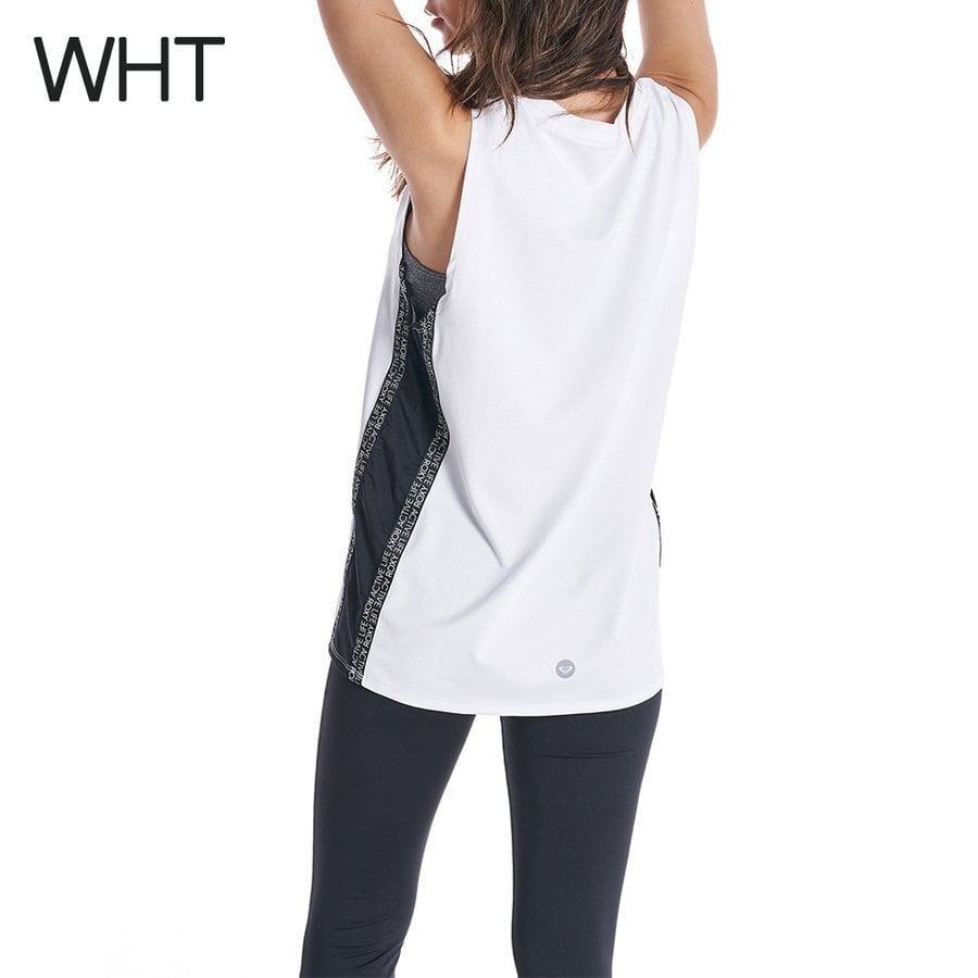 ・メッシュ素材との切り替えデザインが目を引くタンクトップ。