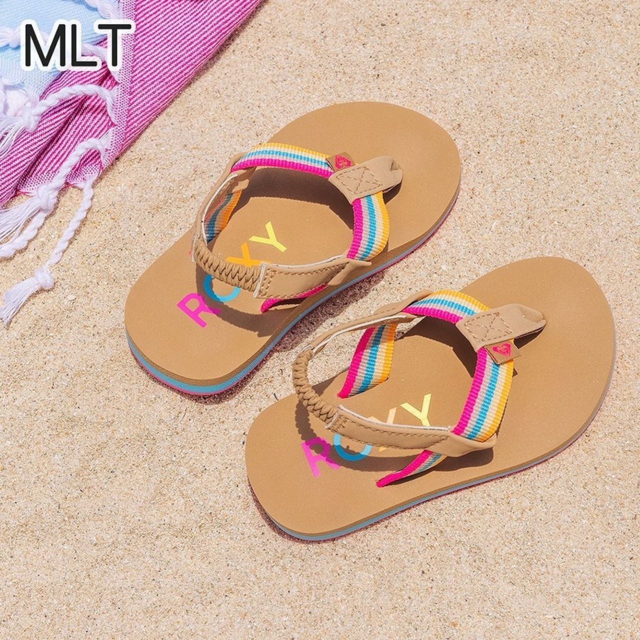 AROL100022 ロキシー サンダル キッズ 通販 新作 人気 子供用 ガール かわいい ギフト プレゼント ビーチ リゾート プール マルチカラー ピンク ロゴ ROXY