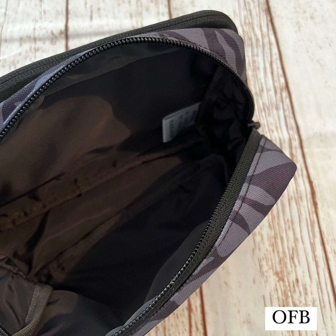 ・耐水ポリエステル素材を使用し、裏地に撥水加工を施した総柄のポーチ。