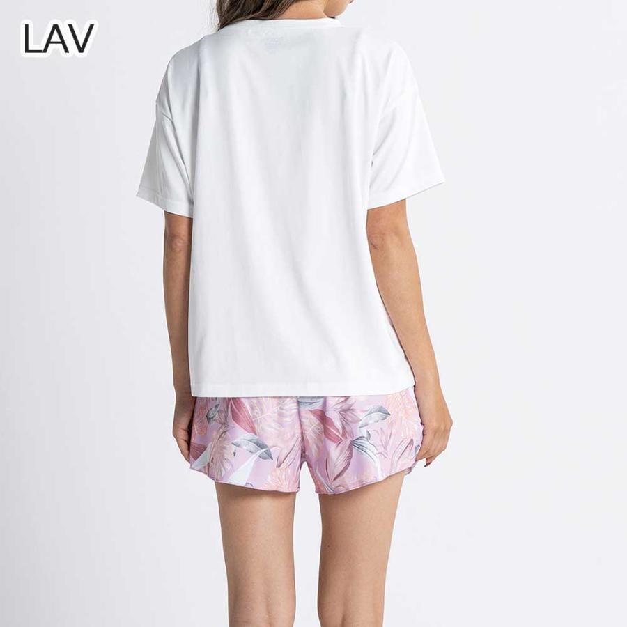 ・ラッシュT、ブラトップ、ボトムのボタニカルの柄を使用した3点セットのスイムウェア。