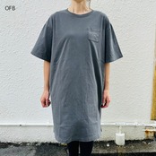 ・胸元のポケットとバックにロゴグラフィックプリントをあしらったTシャツワンピース