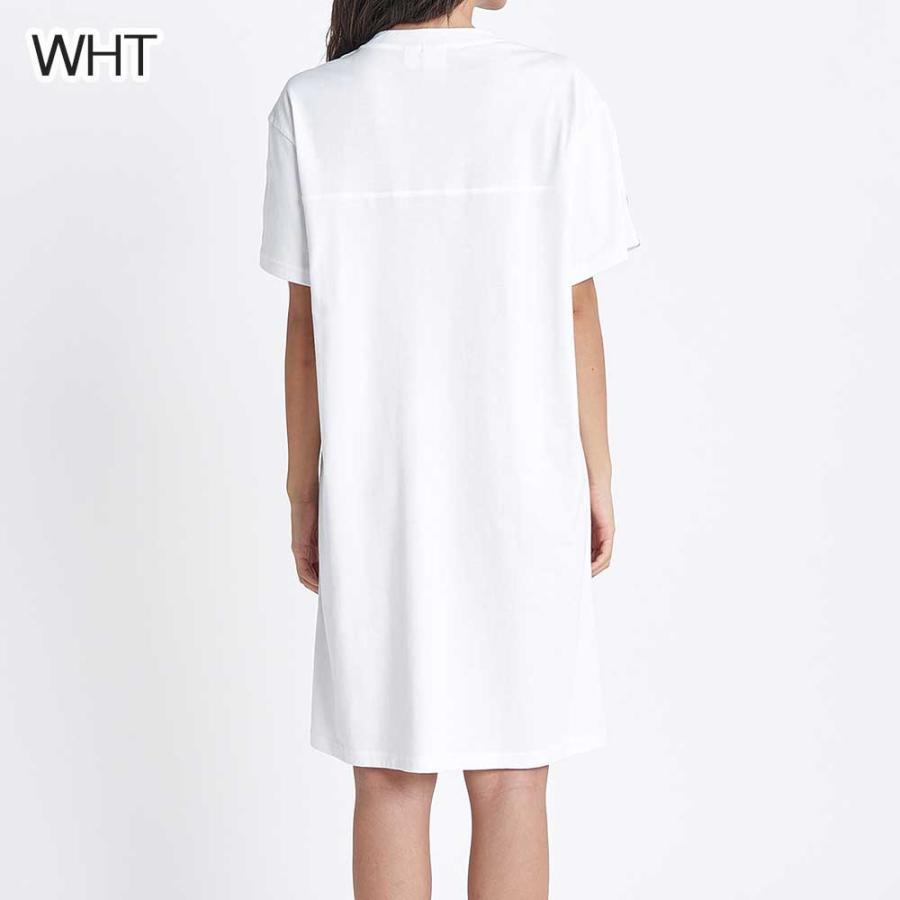 ・ゆったりとしたシルエットのTシャツドレスは、袖にロゴ入りのテープをあしらったのがポイント。